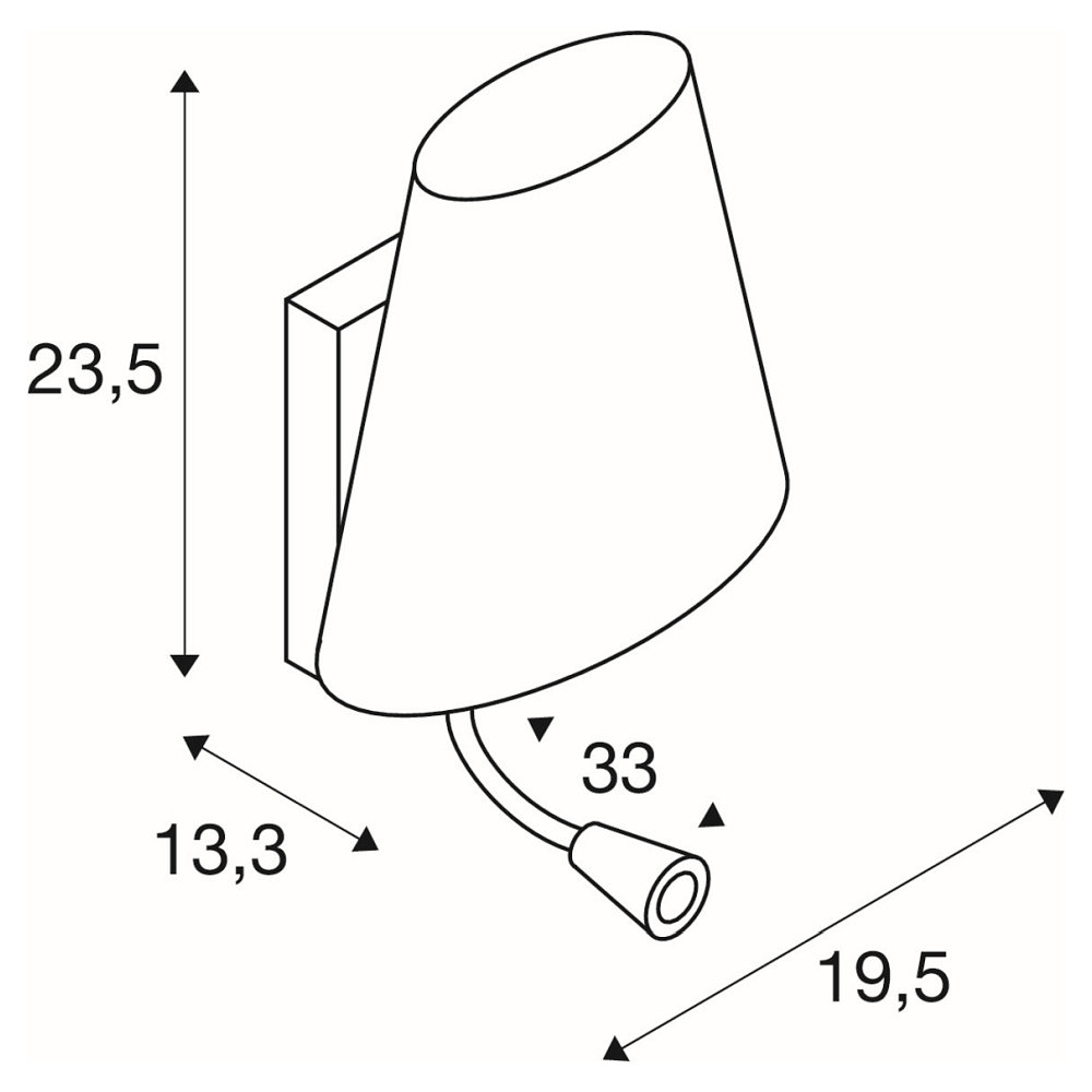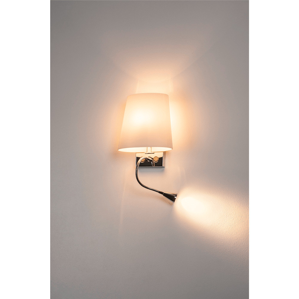 This wall light features an additional flex arm reading spot with a color temperature of 3000K and a beam angle of 30°. The flex arm is adjustable, allowing you to direct the light according to your needs.
