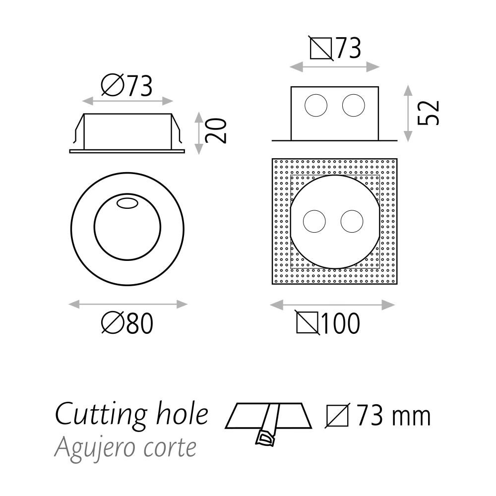 For easy installation, both the recessed pot and the driver are included. The installation opening of the light is 7.3 cm in diameter. The REGAL recessed wall light is specifically designed for wall mounting and is ideal for indoor use.