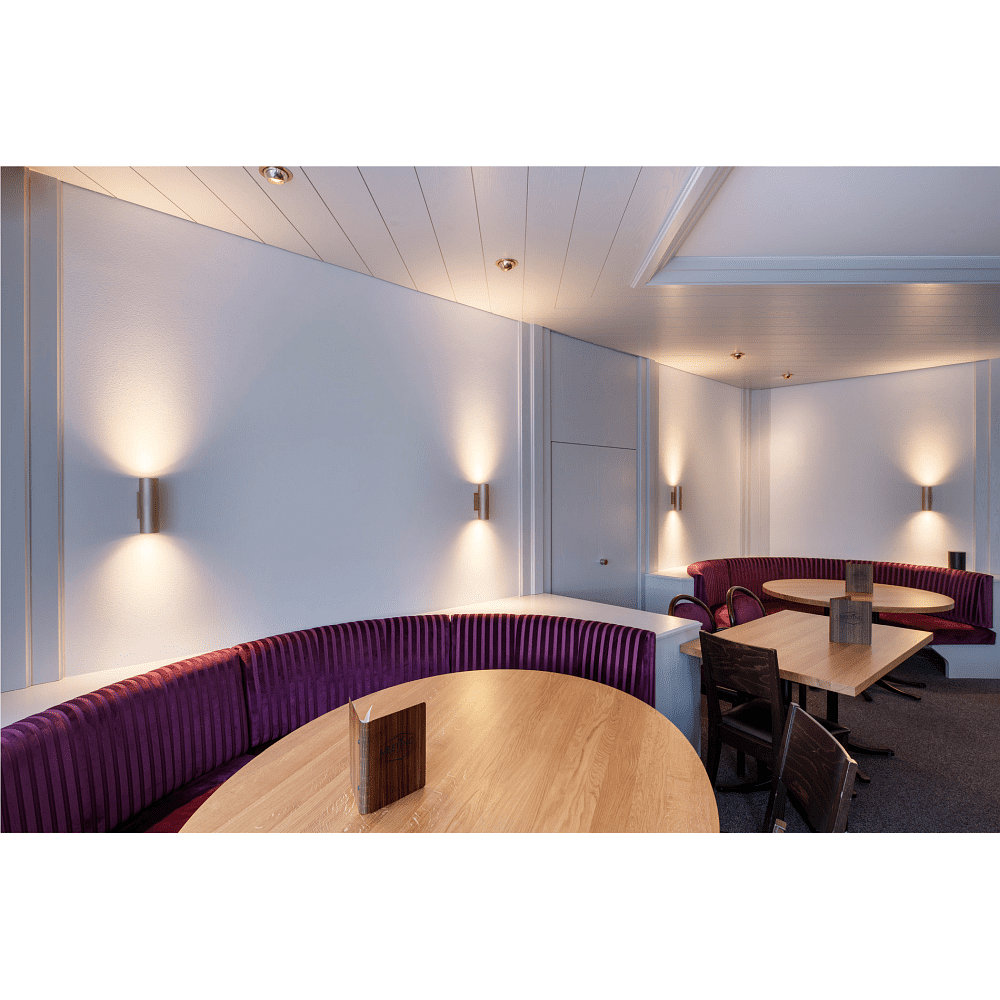 De wandlamp ENOLA_B UP/DOWN biedt zowel direct als indirect licht, wat een aangename sfeer in de kamer creëert. De wandlamp is dimbaar en werkt met dimbare lampen om de helderheid naar persoonlijke voorkeur aan te passen.
