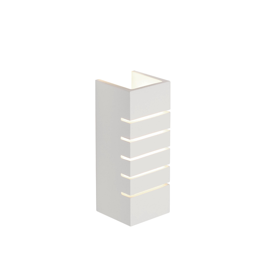 De witte gipsen wandlamp GL 100 SLOT maakt indruk met zijn moderne en eenvoudige ontwerp. Met afmetingen van 9x24x9 cm past hij perfect in elke kamer en zorgt voor aangenaam licht.