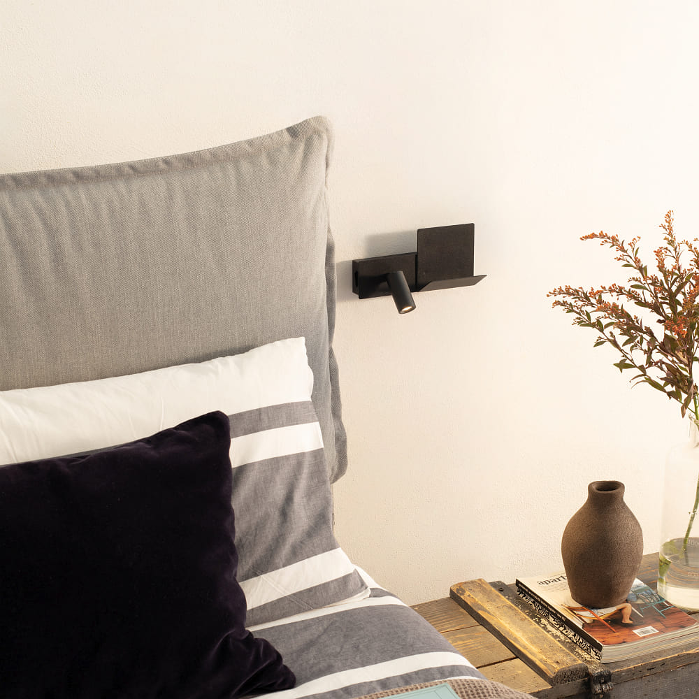 Wandarmatuur KOMODO-1 AP LED links, met USB-oplaadfunctie, met plank LED IP20, zwart