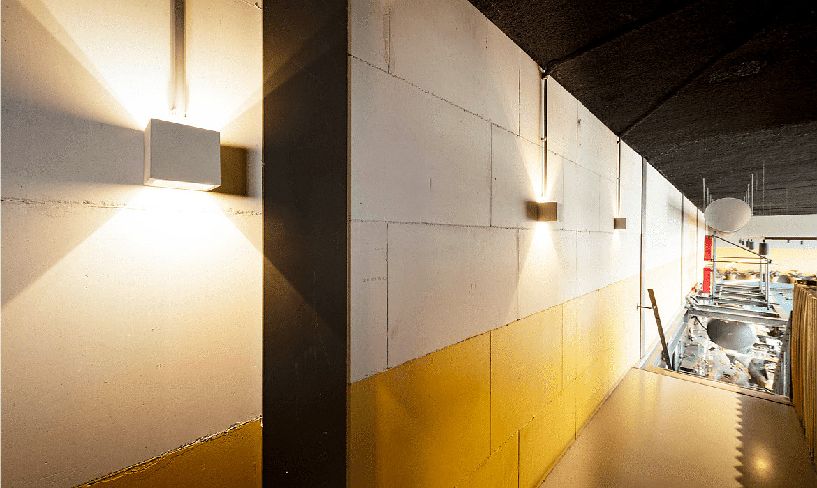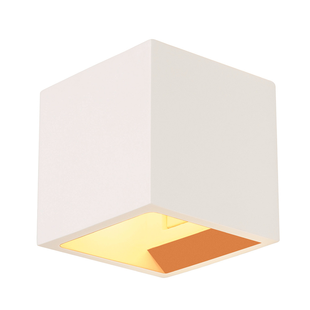 De wandgemonteerde gipsen plafondlamp PLASTRA CUBE wordt geleverd zonder lichtbron, maar u kunt kiezen uit verschillende opties, waaronder LED Perfectfit-lampen. Het maximale energieverbruik is 42W.