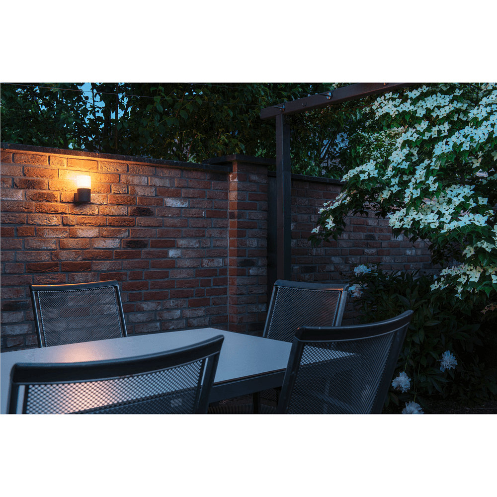 De elegante buitenwandlamp GRAFIT in antraciet is een stijlvolle en decoratieve verlichtingsoplossing voor de ingang, het terras en meer. Met zijn moderne design past het perfect bij elke omgeving en zorgt het voor aangenaam buitenlicht.