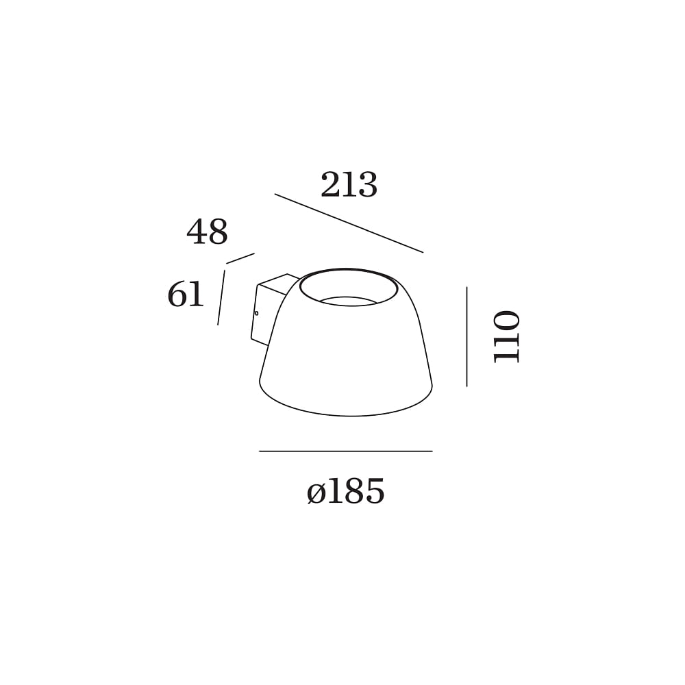 De afmetingen van de lamp zijn Ø 18,5 cm, hoogte 11 cm en diepte 20,5 cm. De lampenkap heeft een diameter van 18,5 cm en een hoogte van 11 cm. De rozet is 4,8 cm lang, 6,1 cm hoog en 2 cm diep.