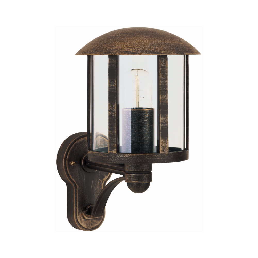 Wandarmatuur voor buitenshuis TYPE NO 1834 up, cilindrisch E27 IP44, bruin, Messing gesatineerd dimbaar